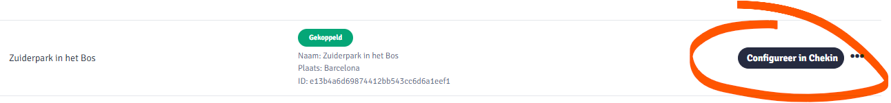 Klik op Configureer Chekin bij de gekoppelde accommodatie.