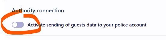 Activeer de connectie om gastgegevens te delen met de lokale autoriteiten.